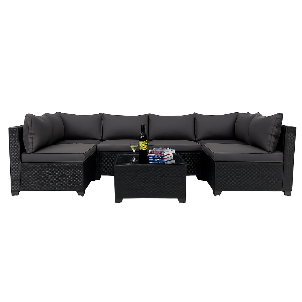 The 7-Piece Outdoor Patio Furniture Set is crafted with all-weather PE rattan wicker and a reinforced steel frame for durability and style. Lightweight yet sturdy, it features breathable, fade-resistant cushions with removable, machine-washable covers for easy cleaning. With multiple configuration options, this modular set adapts to any patio, garden, or poolside layout. Assembly is simple, with all tools included, so you can enjoy your outdoor living space in no time.